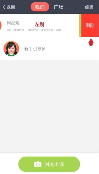 4、而原来你不需要的小偶可以直接左划删除。