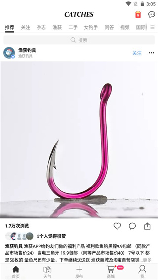 1、在本站下载并安装软件后打开,注册登录后进入软件首页,在首页可以看到系统推荐的各种视频、资讯和钓友分享;