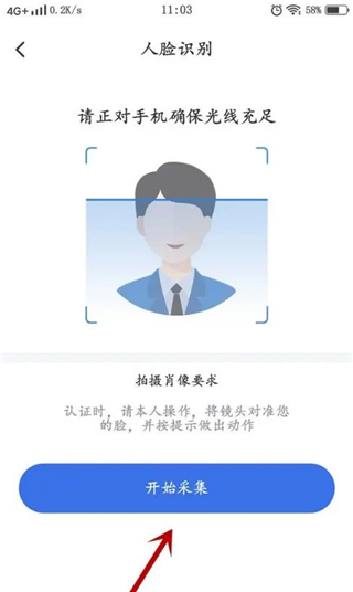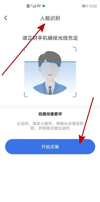 进入到身份验证页面,拍摄本人人脸。