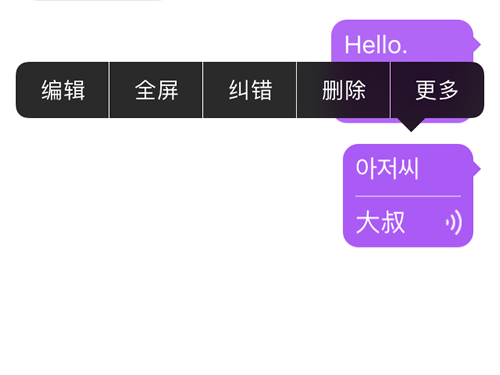 如果你发现录入语音有误,还可以长按选择【纠错】,把录入的语言更正,以便翻译为正确的内容。