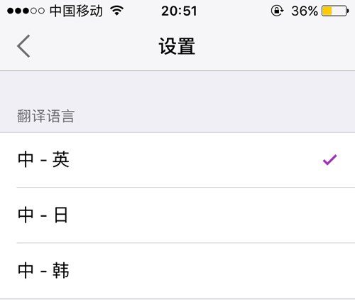 翻译目标支持四种语言转换,你可以点击右上的【更多】,设置翻译的语言。