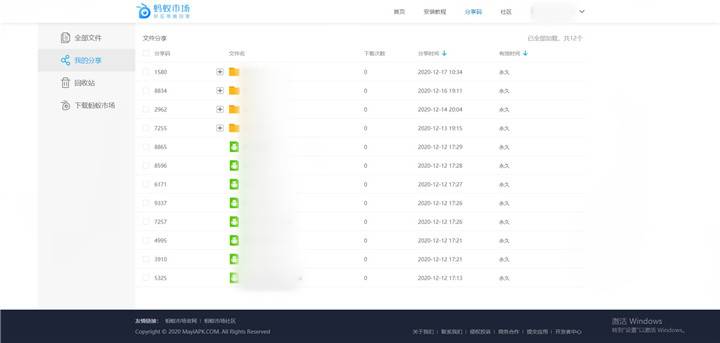 3.登录进去后,你可以上传软件给它们设置分享码,以便下载。分享时间还可以分别设置为7天、30天、或者永久。