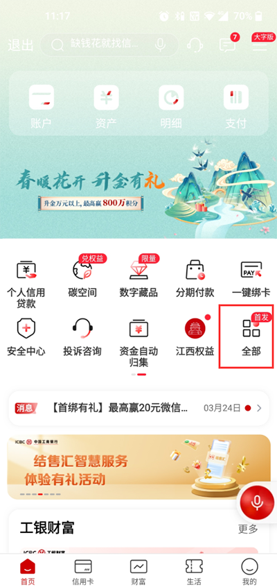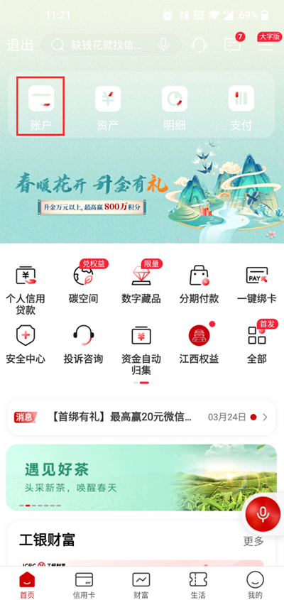 其他:信用卡、存款、财富页签等产品与服务均有优化与提升。