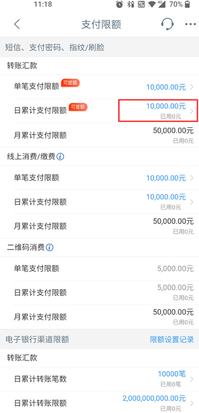4、最后点击进入需要修改限额的选项即可。