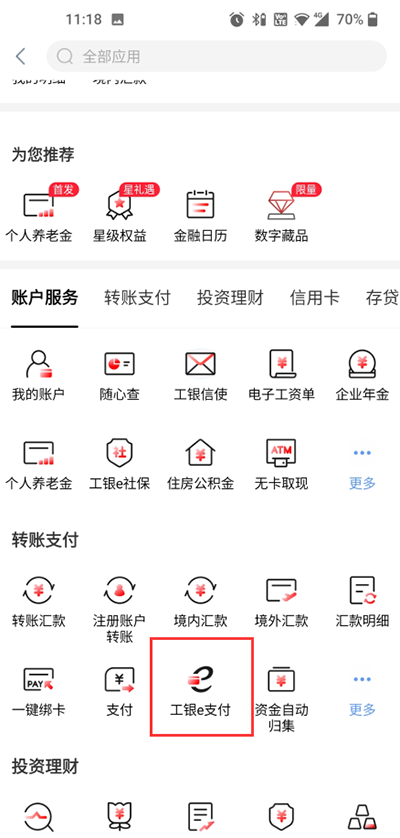 2、点击进入工银e支付。
