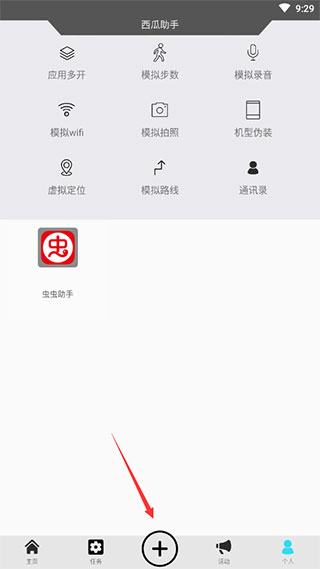 2、在模拟步数之前需要添加需要模拟步数的应用,点击主页面中的+
