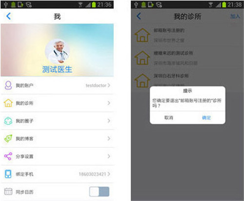 个人信息管理模块用于管理我的个人信息, 我的帐户:可编辑我的个人基本信息; 我的诊所:加入和离开诊所; 绑定手机:绑定验证手机后可以用手机号码进行登录、修改密码以及其它个人账户操作。 同步日历:可将我的日程安排同步到手机自带的日历里,当日程到点时系统将自动提醒。
