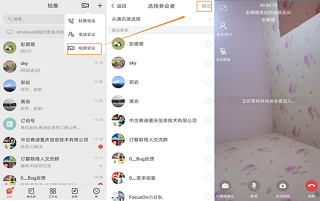 1、发起会议:右上角通话按钮-视频会议-选择联系人-发起会议