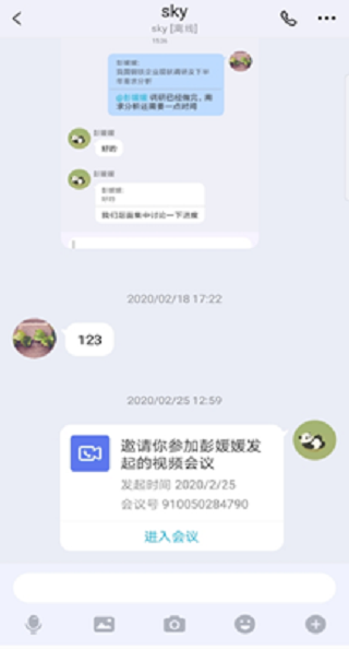 2、接收视频会议邀请:点击进入参会