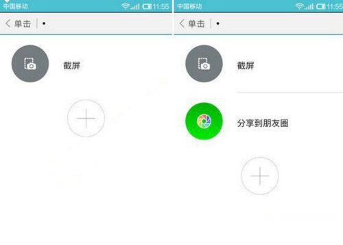 另外米键APP除了单一动作指令外,还能够实现动作的组合功能,比如截屏后分享到朋友圈,拍照后分享到微博等,如下图所示。