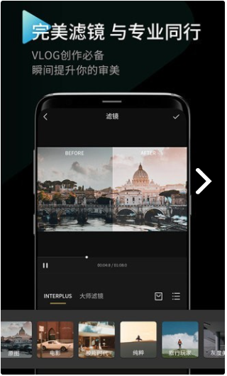 印象INTERPHOTO安卓版除了拍照以外,它的滤镜,视频拍摄和视频剪辑这几个功能也是十分逆天的
