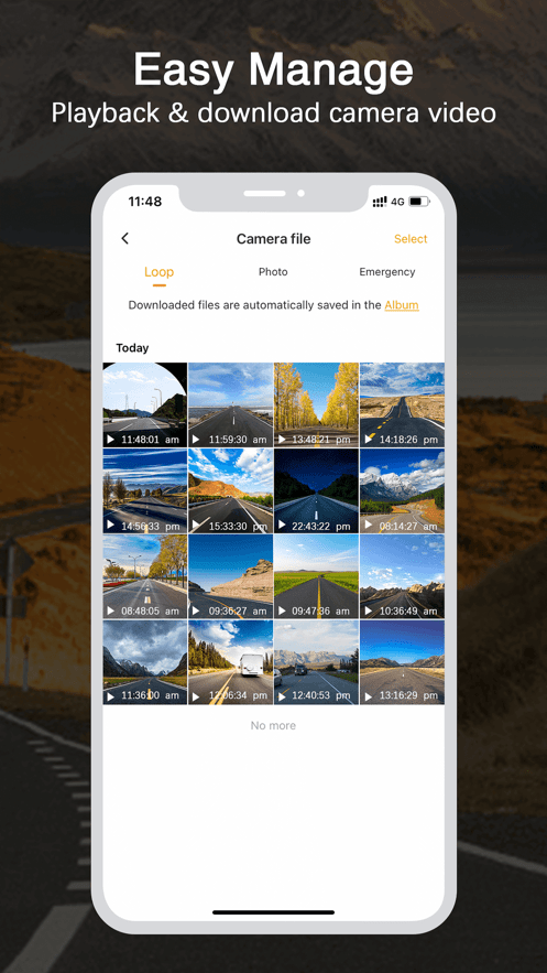 让您能够便利地观看驾驶记录视频、下载事故录像、调整行车记录仪设置并通过手机分享重要的驾驶时刻