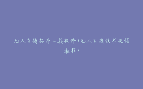 无人直播拓扑工具软件(无人直播技术视频教程)