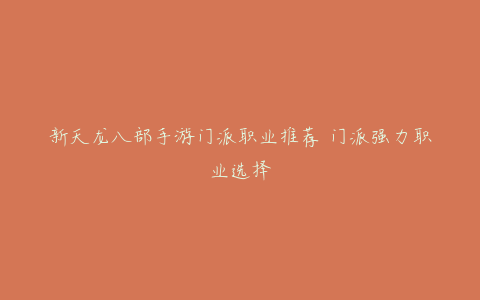 新天龙八部手游门派职业推荐 门派强力职业选择