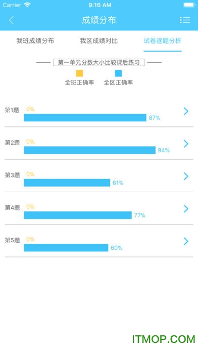 其它班级学校的对比情况、及每道试题的正确率分析对比