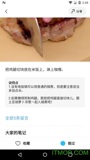 跟做菜谱可以随时添加文字笔记,或上传图片记录下厨记忆