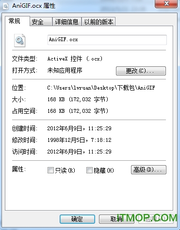 2. 复制文件"AniGIF.ocx"到"windowssystem32"文件夹下.