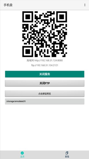 《手机盘》自带Http服务器和Ftp服务器,可以让电脑通过浏览器和文件资源管理器访问手机文件。如果两个设备都安装了此应用,可以自动发现设备,无需打字输入地址。