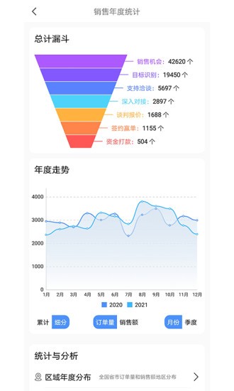 3.新增年度数据分析:销售、电话、拜访、地区和商品等月度季度年度分析、对比、增幅分析。
