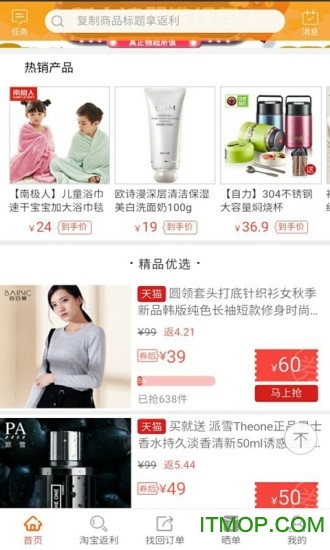 搜索宝贝标题或复制淘口令均能享返利