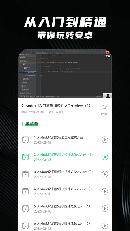 拍照摄影安卓教程免费版是一款非常好用的编程学习软件,这里是专门为初学者打造的安卓编程教程软件,这里提供了超多的知识点,让大家通过学习口语更好的掌握相关的知识点,学安卓从这里开始,就算零基础用户也没有任何压力,有需求的朋友快来下载吧!