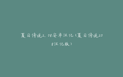 夏日传说2.08安卓汉化(夏日传说208汉化版)
