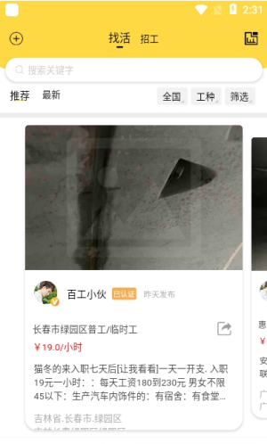 2,功能还是非常完善的,专为技工师傅们打造的在线找工作类手机平台