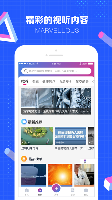 2,内容分为前沿科技、健康生活、科普乐园、V视快递、实用技术、玩转科学等24个频道