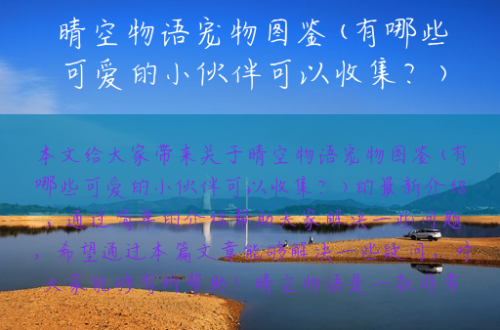晴空物语宠物图鉴(有哪些可爱的小伙伴可以收集?)