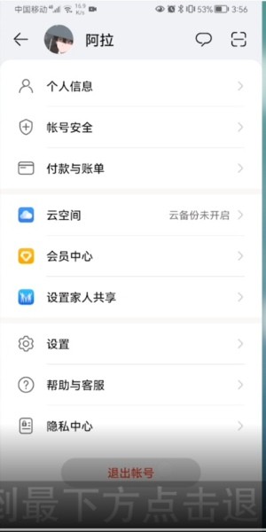 3、滑到最下方,点击退出账号即可。