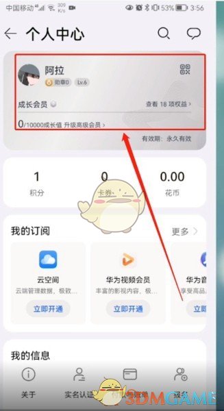 2、点击名片卡牌(就是最上面那个带有您头像的卡牌)进入账号中心。