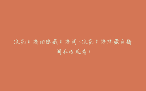 浪花直播的隐藏直播间(浪花直播隐藏直播间在线观看)