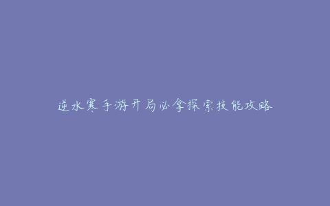 逆水寒手游开局必拿探索技能攻略