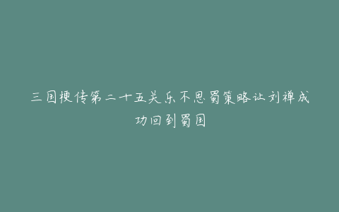 三国梗传第二十五关乐不思蜀策略让刘禅成功回到蜀国