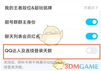 4、关闭下方的【QQ达人和登录天数】即可。