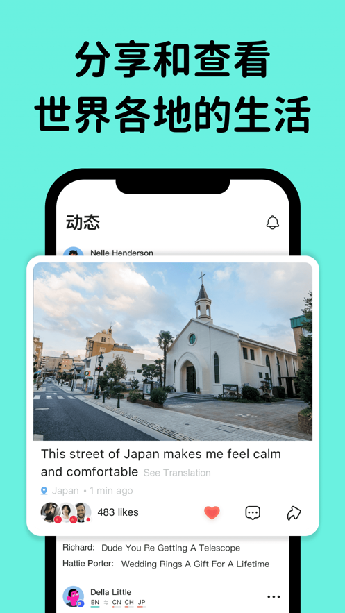 拍照摄影Yeeha找语伴交友APP是专门的社交聊天软件,该软件的主要功能是给用户提供全面的社交服务,用户使用起来非常的方便,强大的功能和性能在这块有着非常不错的表现,用户可根据自己的需求来社交,随时可以在线互动聊天,功能齐全,玩法多样,可满足用户的一切社交需求,非常的实用给到用户最完善的使用体验,快来下载试试吧。