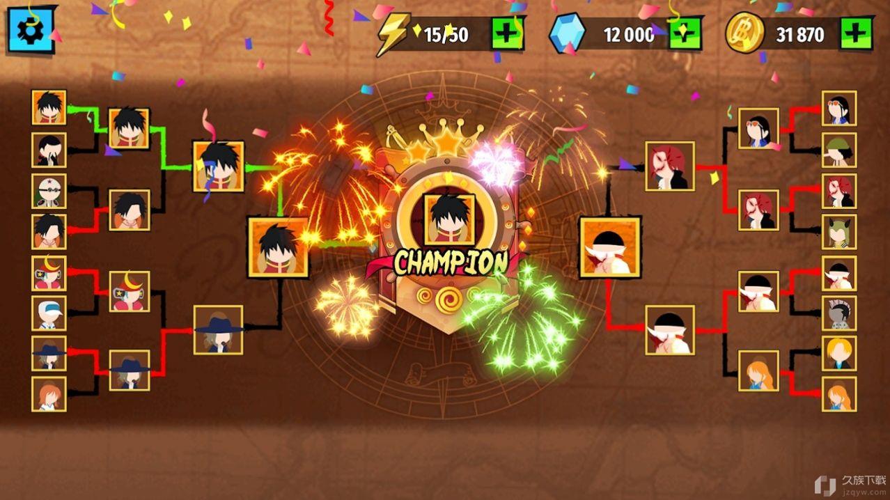 拍照摄影火柴人海盗战斗是一款采用了经典的火柴人角色形象设计的动作格斗竞技闯关的游戏,游戏中有着很多的海贼王动漫的元素内容,超多的海贼王里面的人物角色可以自由的获取使用,不断的提升实力去进行刺激过瘾的战斗闯关的挑战内容。