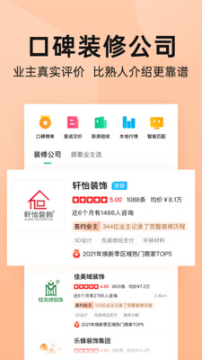 4、汇聚了众多的口碑优良的装修公司,你可以更好的从中来选择到靠谱的使用;