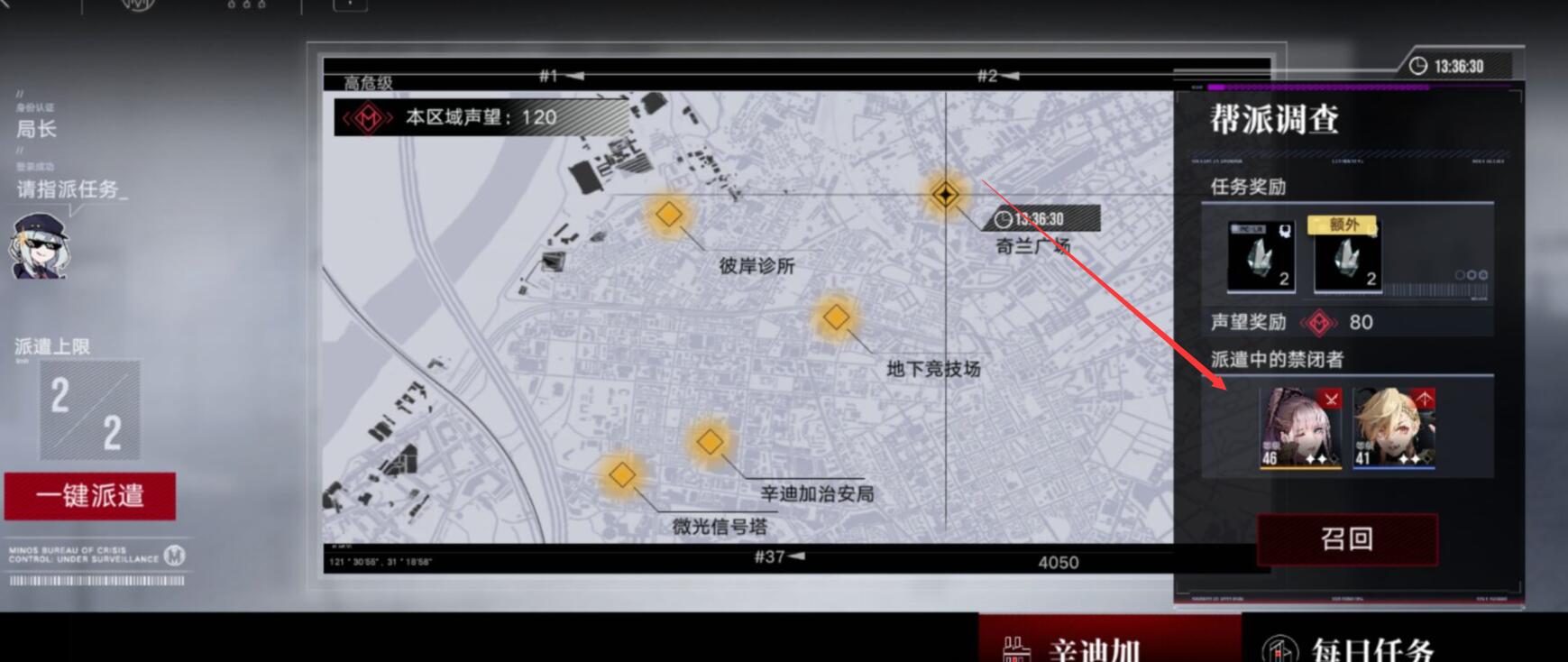 然后点那个黄点派遣,随便选个建筑或街区进行派遣。
