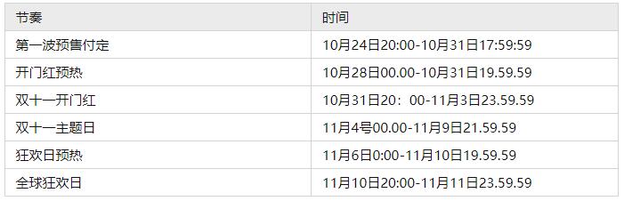 天猫的双十一活动时间安排