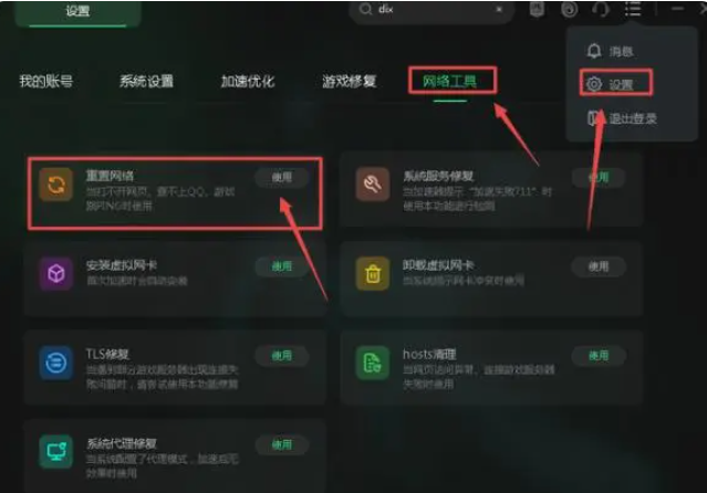 打开奇游的内置工具箱,里面有重置本地网络和清理hosts,大家可以都使用一下,把堵塞的网络清理一下有概率会解决GM命令的问题。