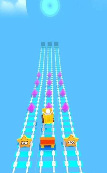 1、玩家进入火柴人小推车游戏,控制角色开始快进,要滑动切换轨迹避开障碍物;