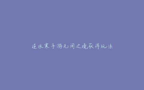 逆水寒手游无间之境获得玩法