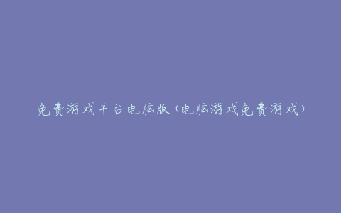免费游戏平台电脑版(电脑游戏免费游戏)