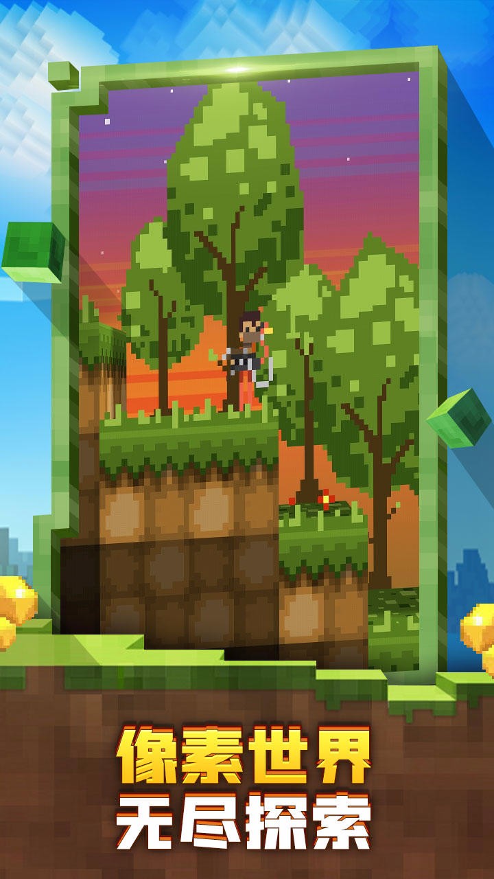2、游戏中的所有场景、人物和生物均采用经典像素风格设计,在这里你可以自由探索各类游戏。