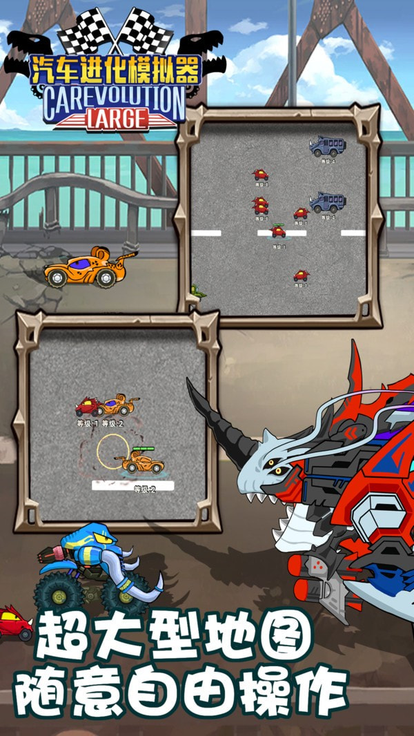 3、游戏内建庞大地图,玩家需要不断吞噬其他低等级汽车才能进化,这是游戏的规则。