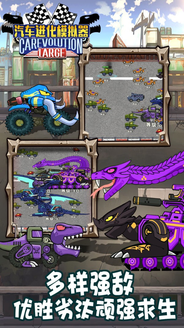 2、汽车进化模拟器有多种不同风格的汽车可供玩家选择,还可以实时匹配多名玩家参与进化竞技;